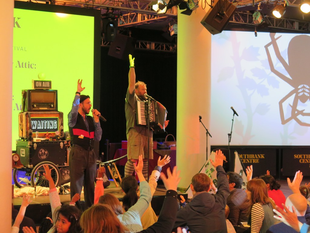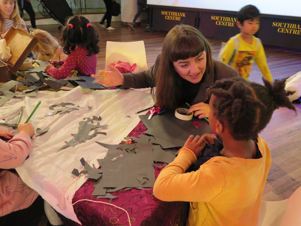 We took over the Southbank Centre’s Clore Ballroom during London Literature Festival with a narrative collaging workshop and a live interactive storytelling show with music and shadow puppetry all set in an imaginary library attic in the City of Stories.