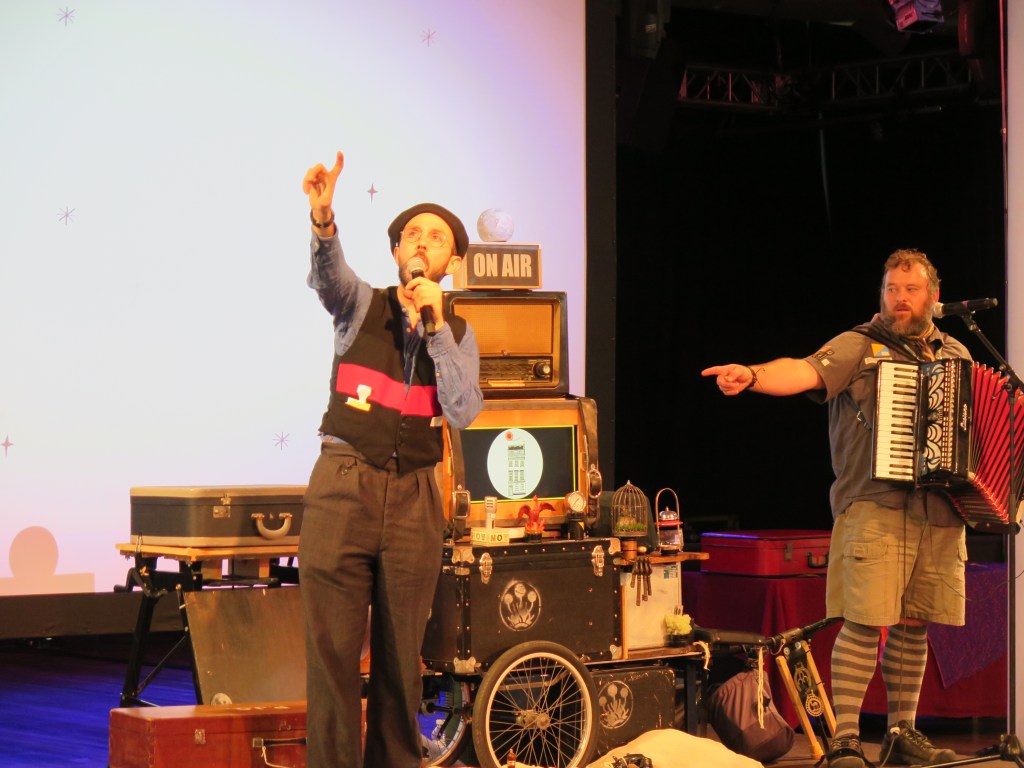 Full of curiosity the Wandering Wonderers arrive to make stories from the things that they find. Appearing a number of times as walk about and as an interactive stage show these characters discovered strange and hilarious stories with the public.