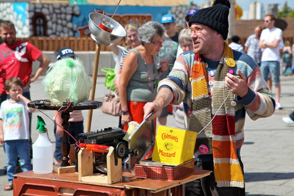 I created this piece of street theater with Familia de la Noche. I wrote for it, designed and made the props and puppets, designed and made the costumes (with Hollie Miller), and created soundscapes and audio media for it. I also played the role of Peter Potts on occasion.