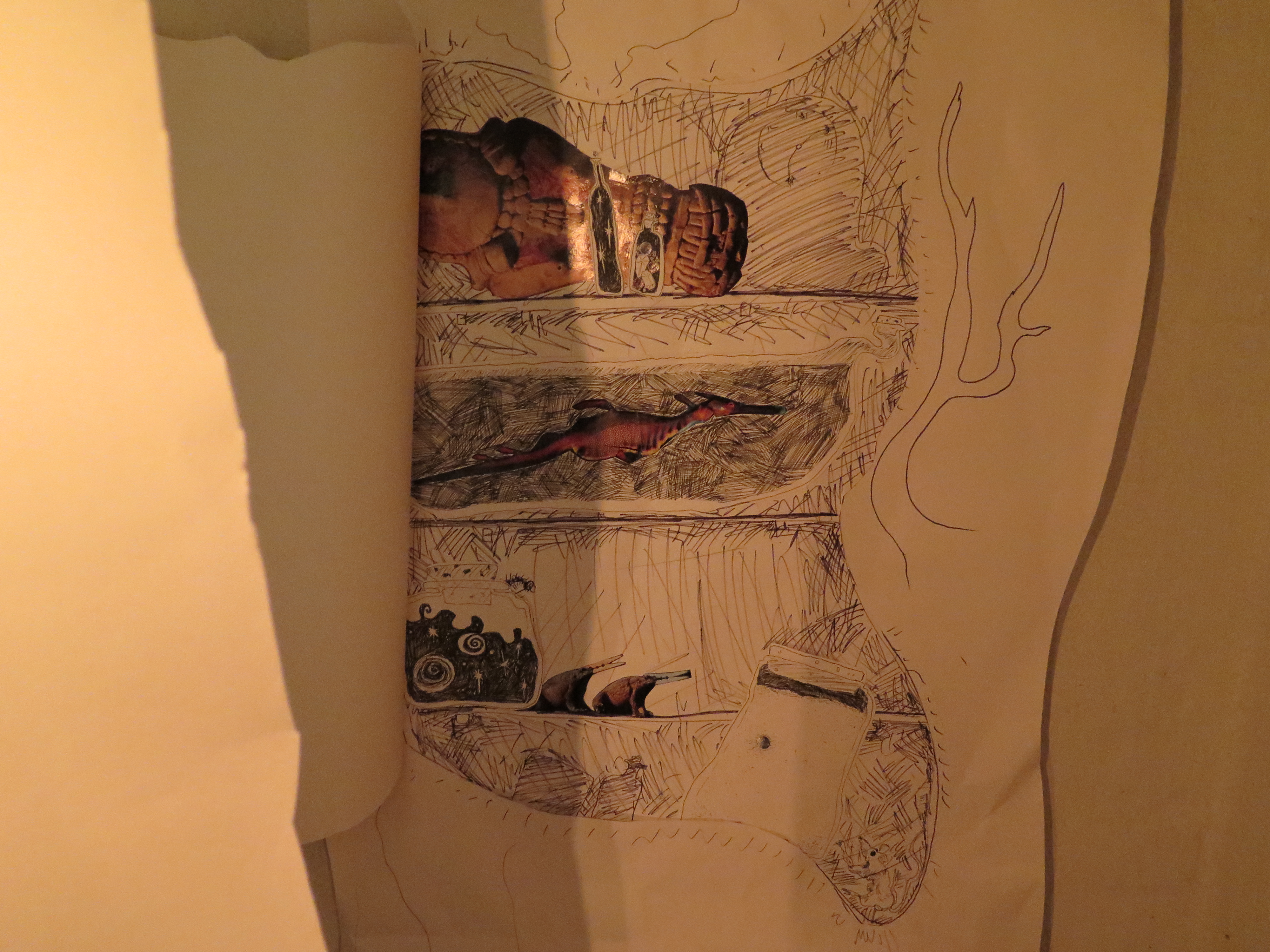 I created this for a single performance. It included crinkling mysterious 8 bit soundscapes and illustration also made by me.