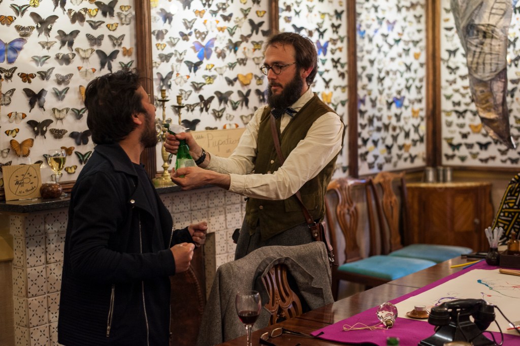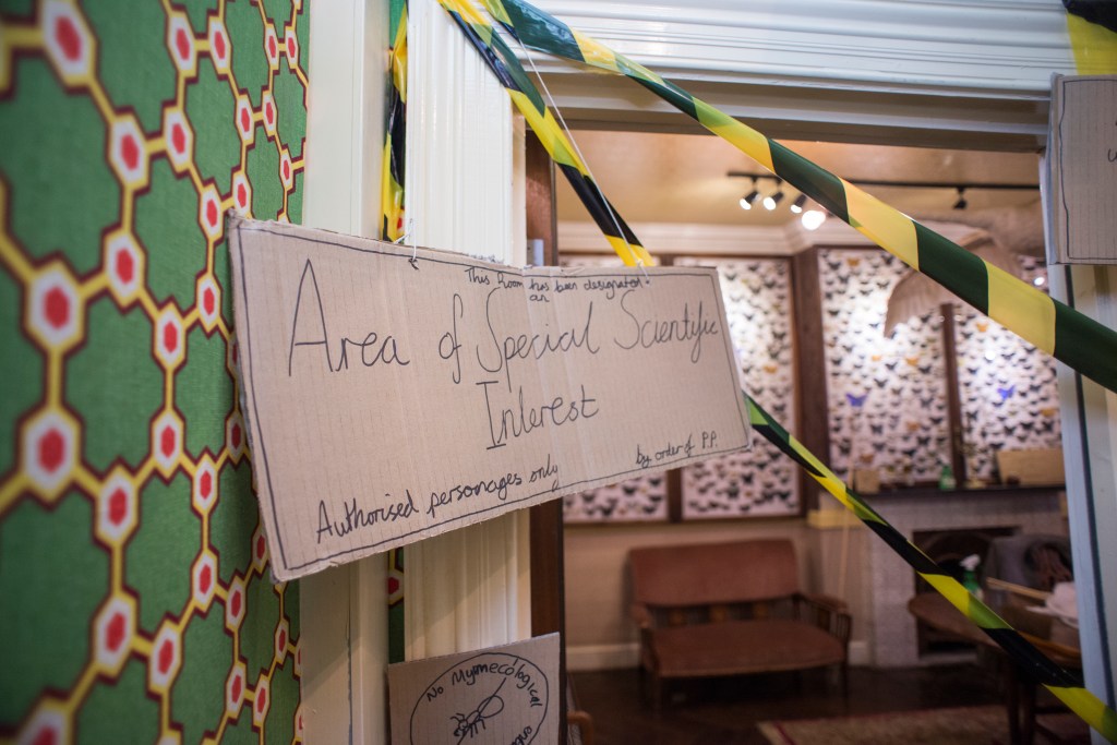 For the launch party of Allez! Studios I occupied this beautiful room as Peter Potts – amateur entomologist extraordinare with a range of activities including competitive butterfly netting, psychic microscopy, chrysalis massage, rigorous de-anting, listening to the chirrups of the giant chrysalis and plenty of tin-can telephone tomfoolery.